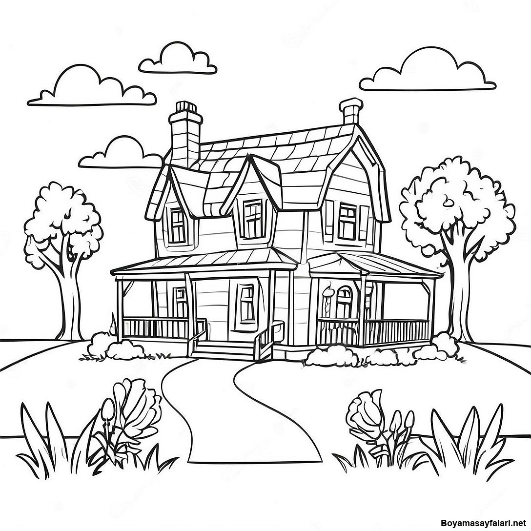 Bahçeli Şirin Çiftlik Evi Boyama Sayfası