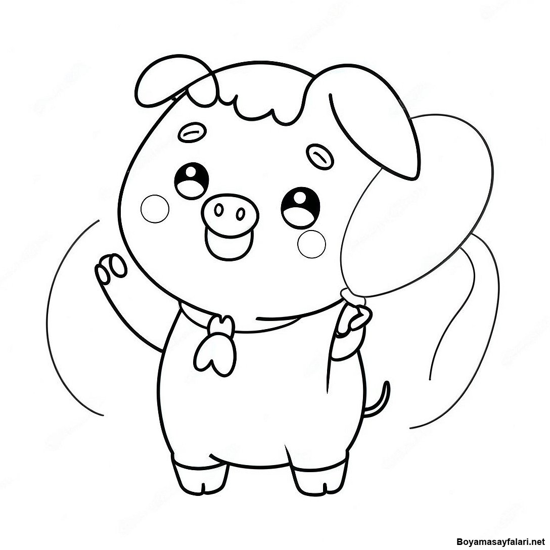 Balon Tutan Sevimli Kawaii Domuz Boyama Sayfasi