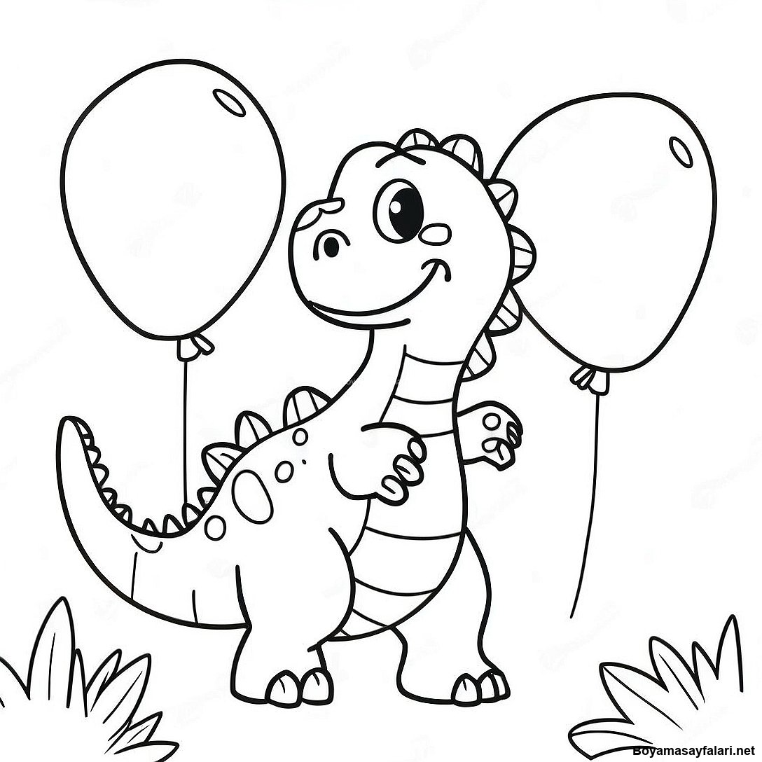 Balonlu Mutlu Dinozor Boyama Sayfası