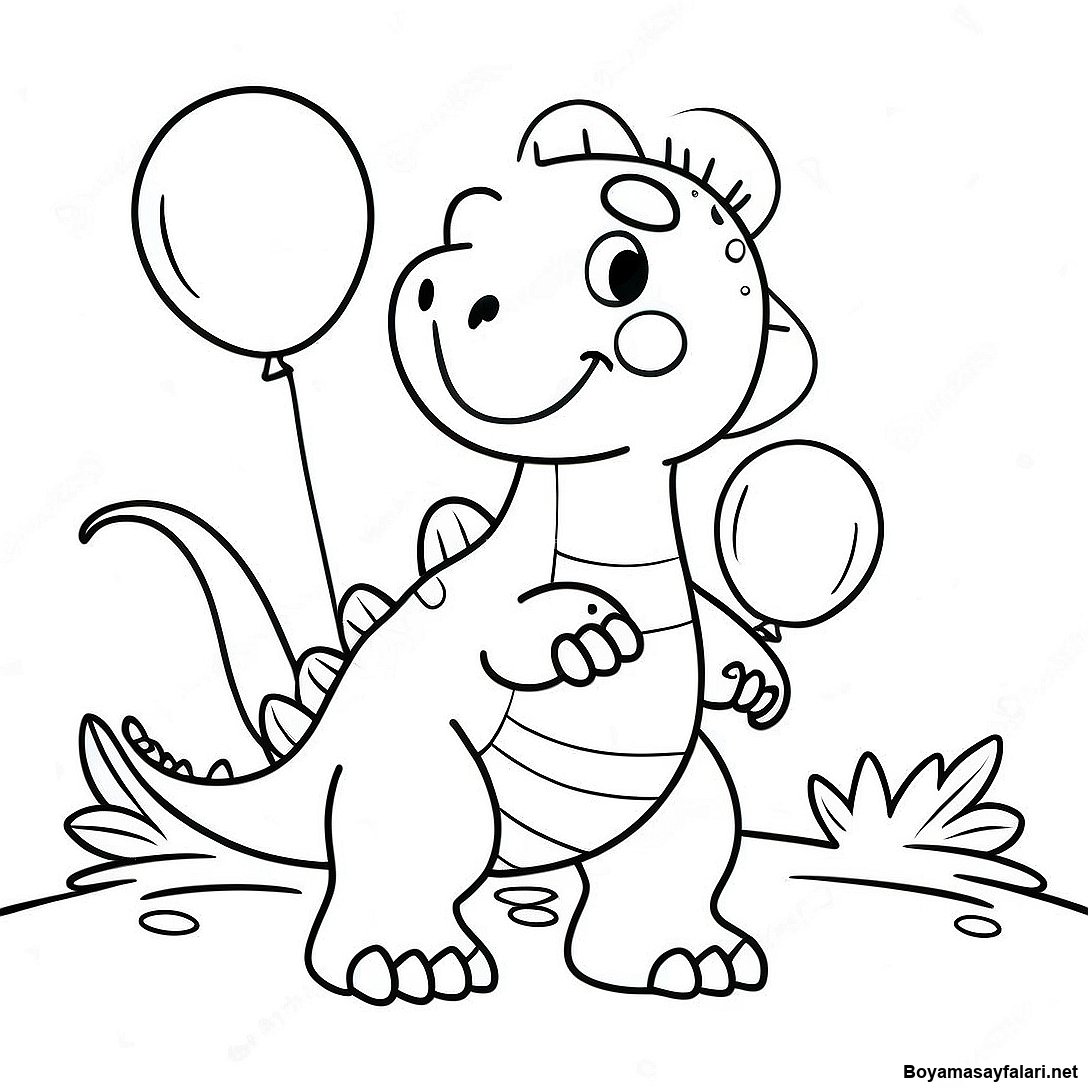 Balonlu Mutlu Dinozor Boyama Sayfası