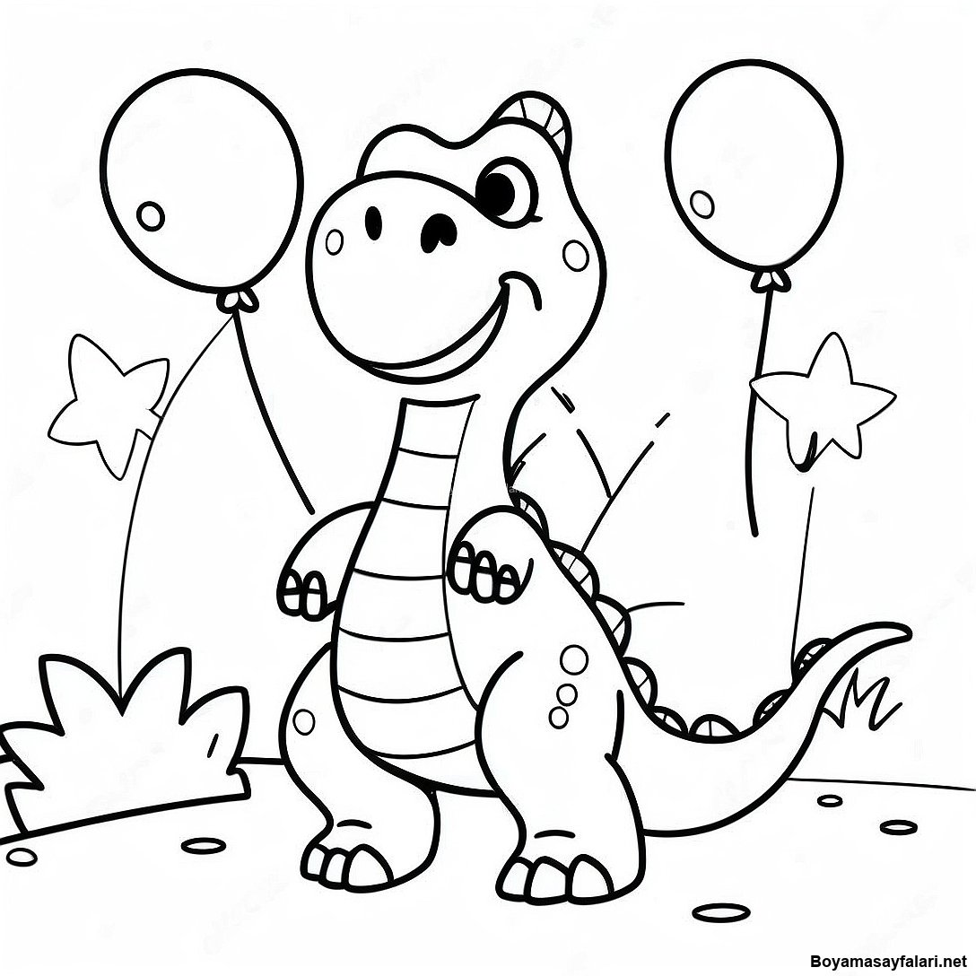Balonlu Mutlu Dinozor Boyama Sayfası