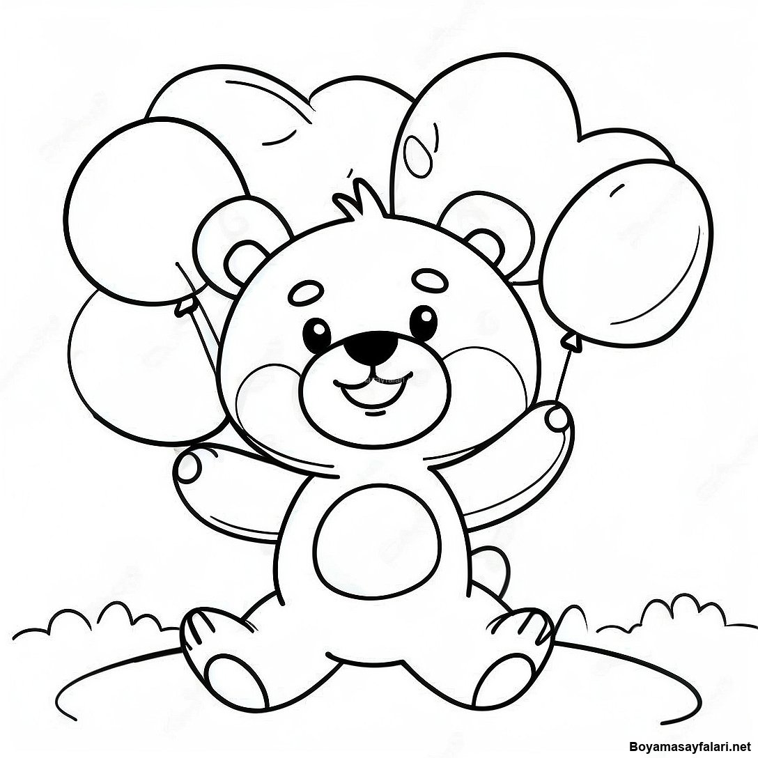 Balonlu Mutlu Kahverengi Ayi Boyama Sayfasi