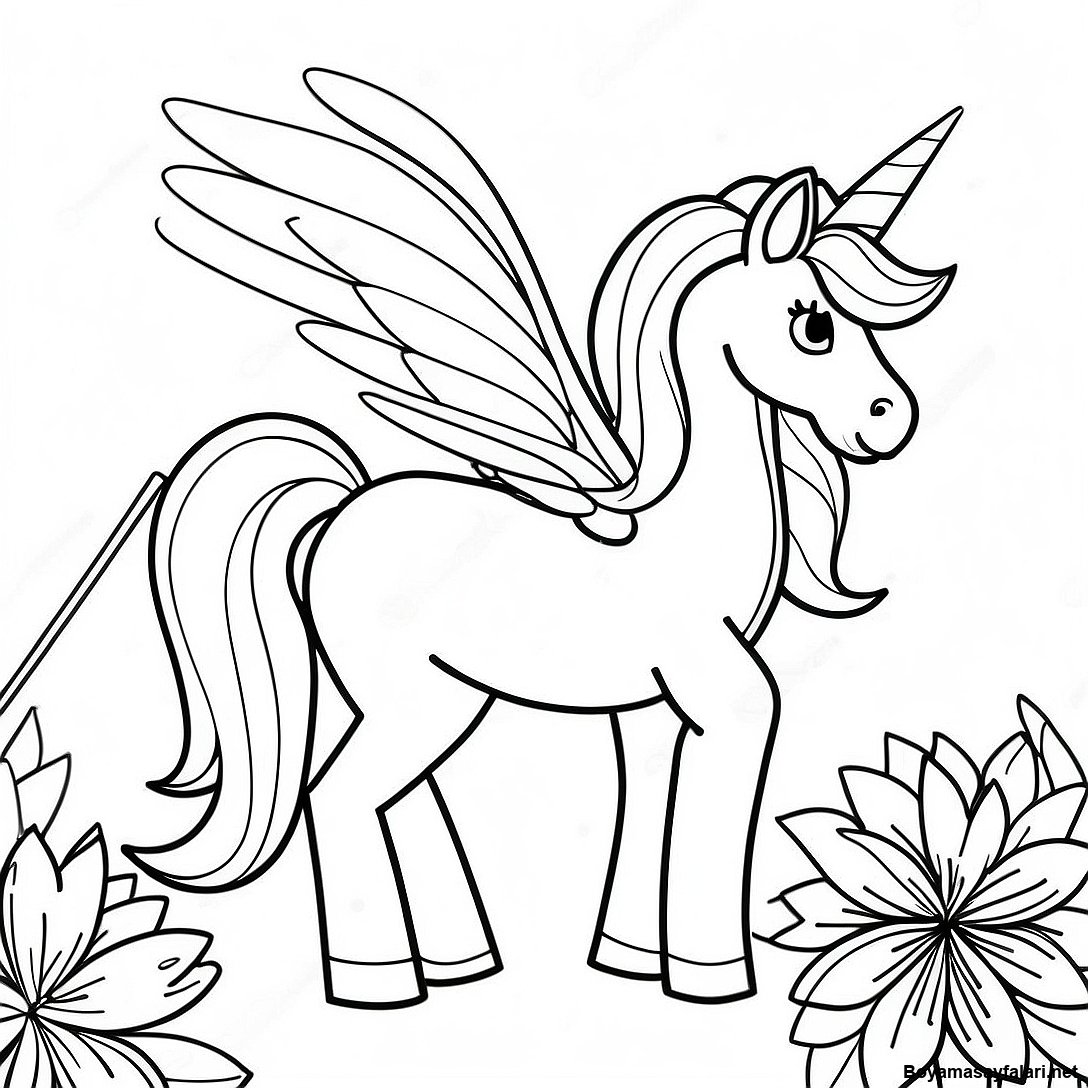 Parlak Yeleli Sevimli Alicorn Boyama Sayfası