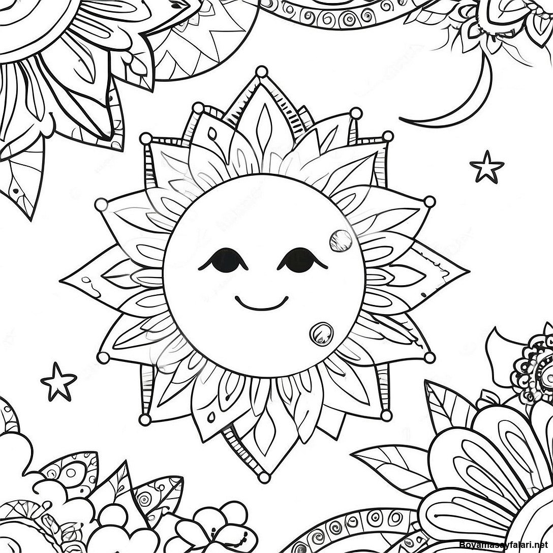 Bohem Gunes Ve Ay Boyama Sayfasi