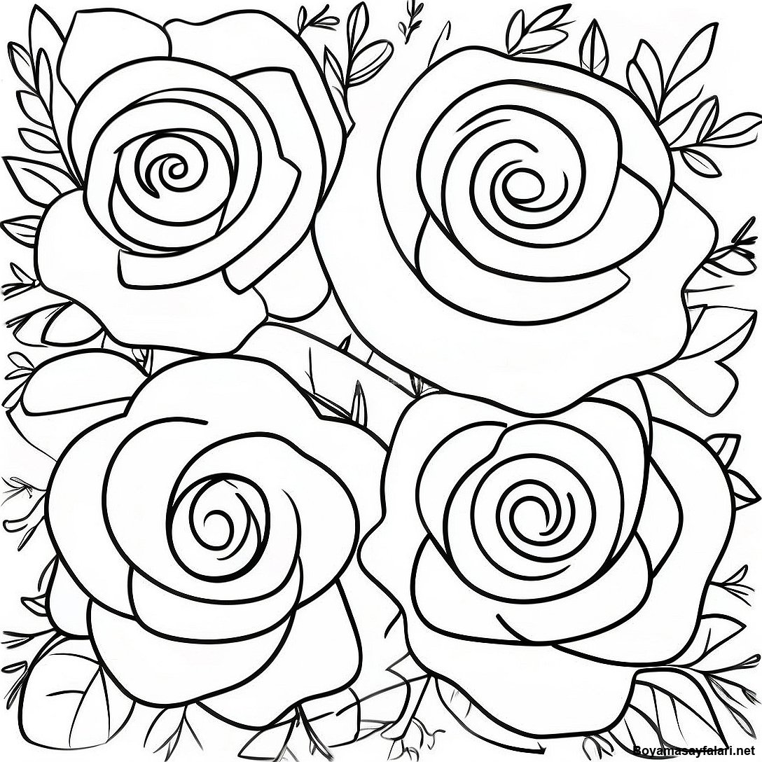 Gerçekçi Gül Çiçeği Boyama Sayfası