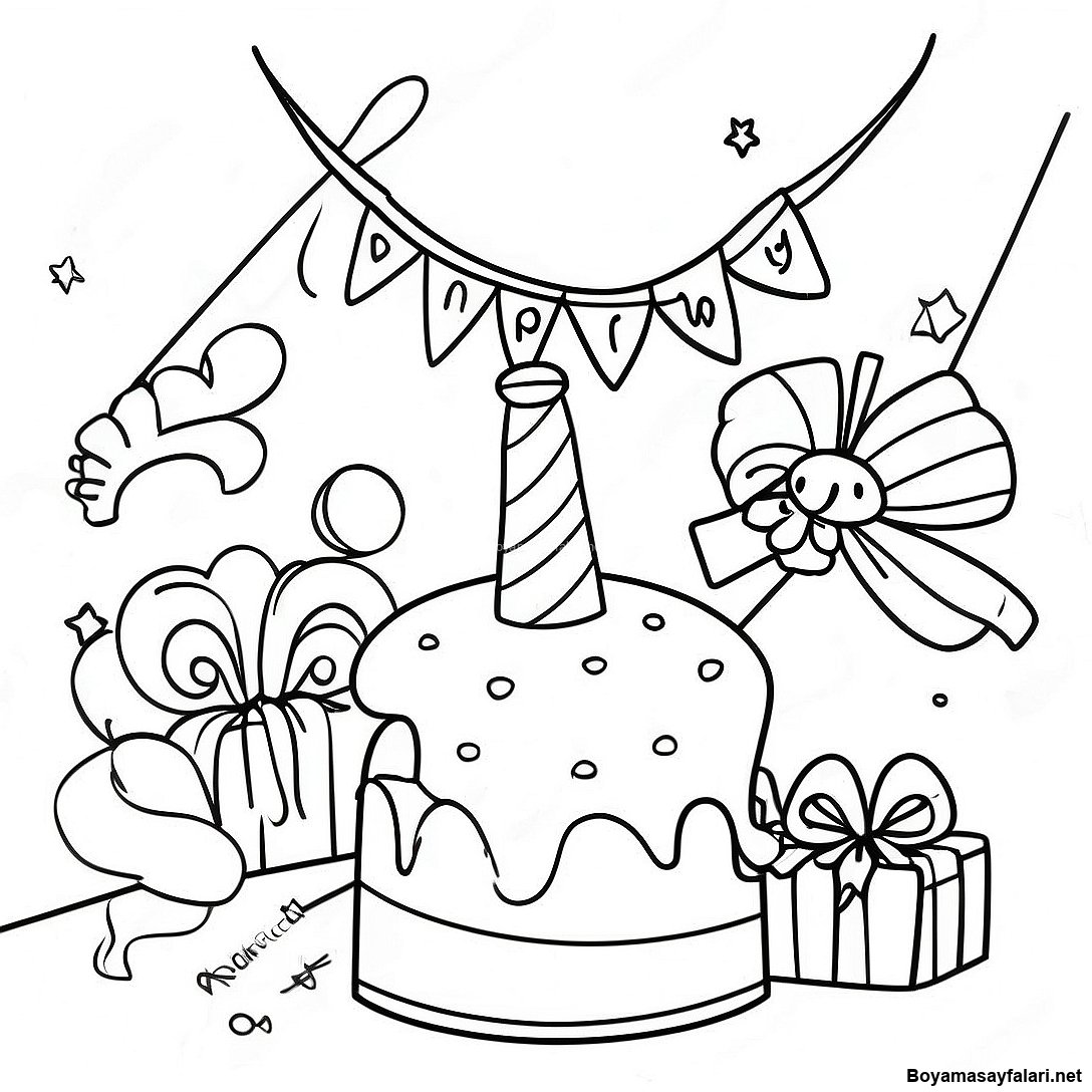 Cazibeli Mutlu Dogum Gunu Parti Manzarasi Boyama Sayfasi 91993 31736