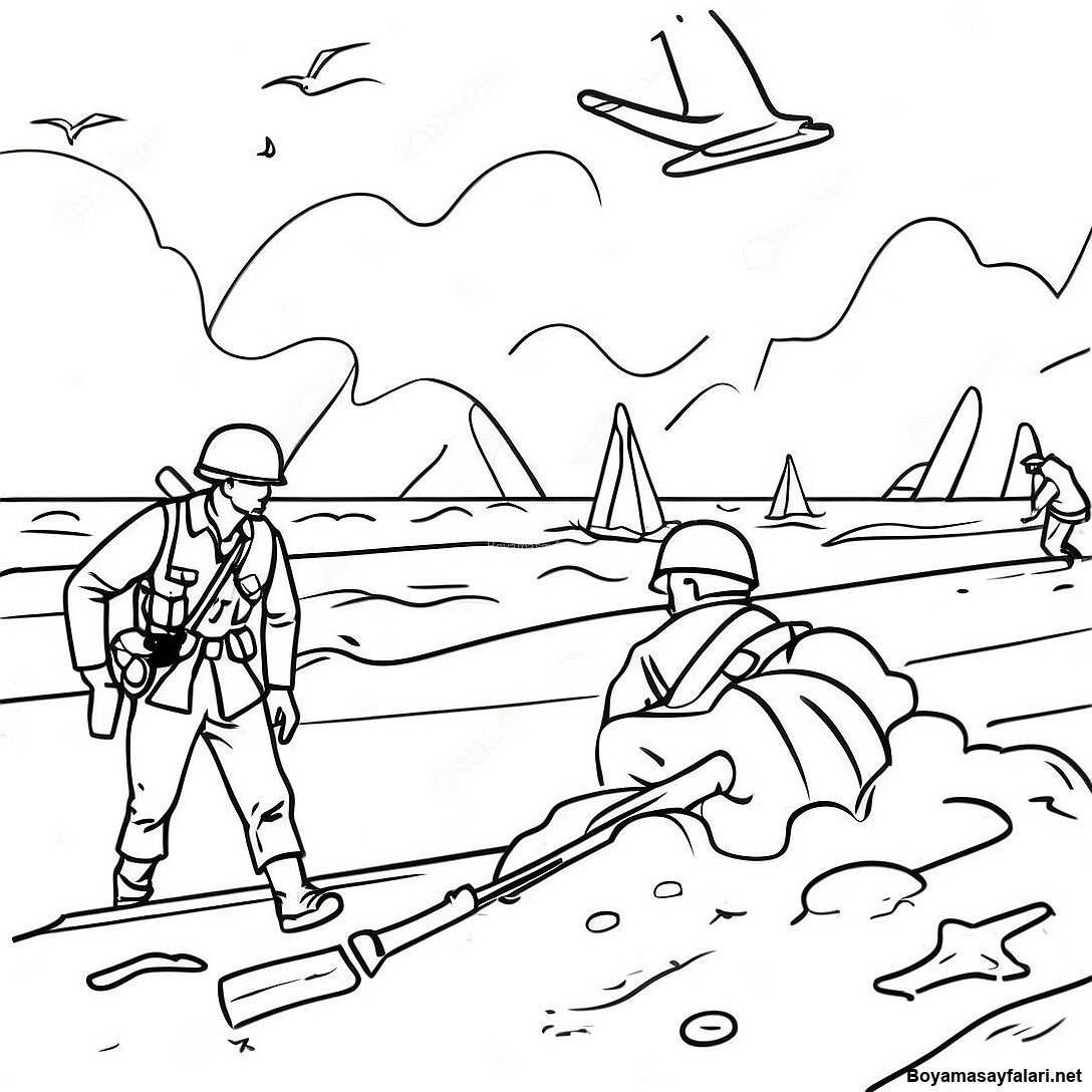 D Günü Plaj Saldırısı Boyama Sayfası