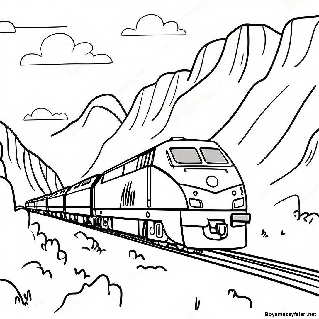 Kırsalda Hızla Giden Tren Boyama Sayfası