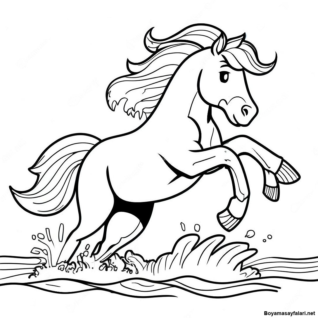 Dinamik Atin Su Icinden Atlama Boyama Sayfasi