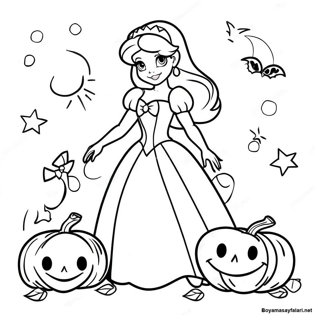 Disney Prensesi Cadılar Bayramı Boyama Sayfası'in Yazdırılabilir PDF'sini İndir