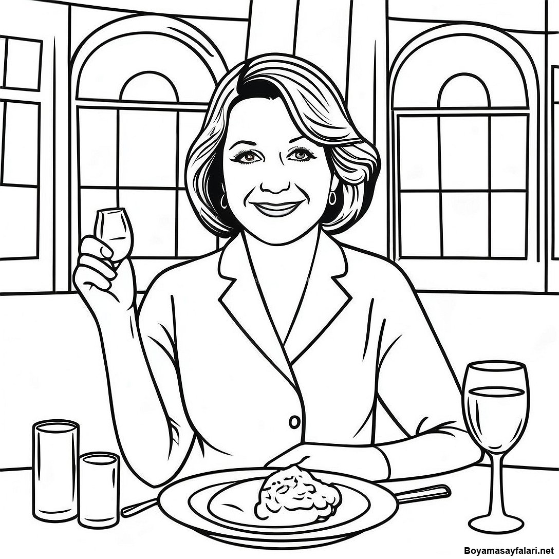Emily Gilmore Şık Bir Akşam Yemeğinde Boyama Sayfası'in Yazdırılabilir PDF'sini İndir