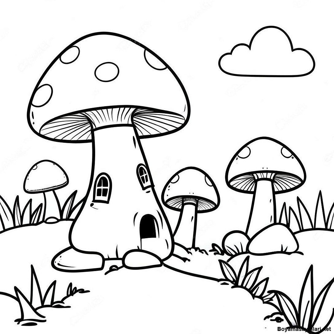 Fantastik Mantar Köyü Boyama Sayfası'in Yazdırılabilir PDF'sini İndir