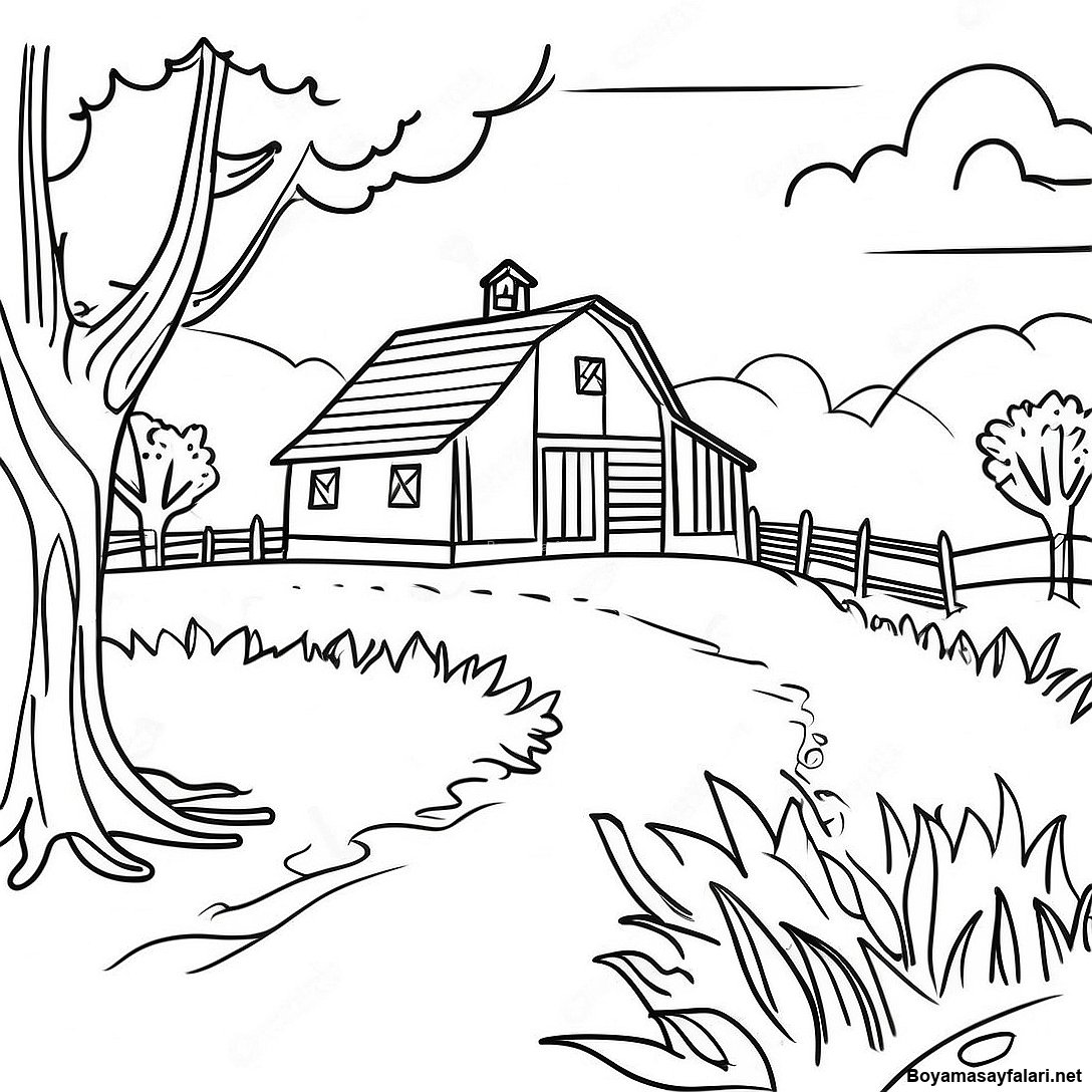 Gercekci Ciftlik Manzarasi Boyama Sayfasi