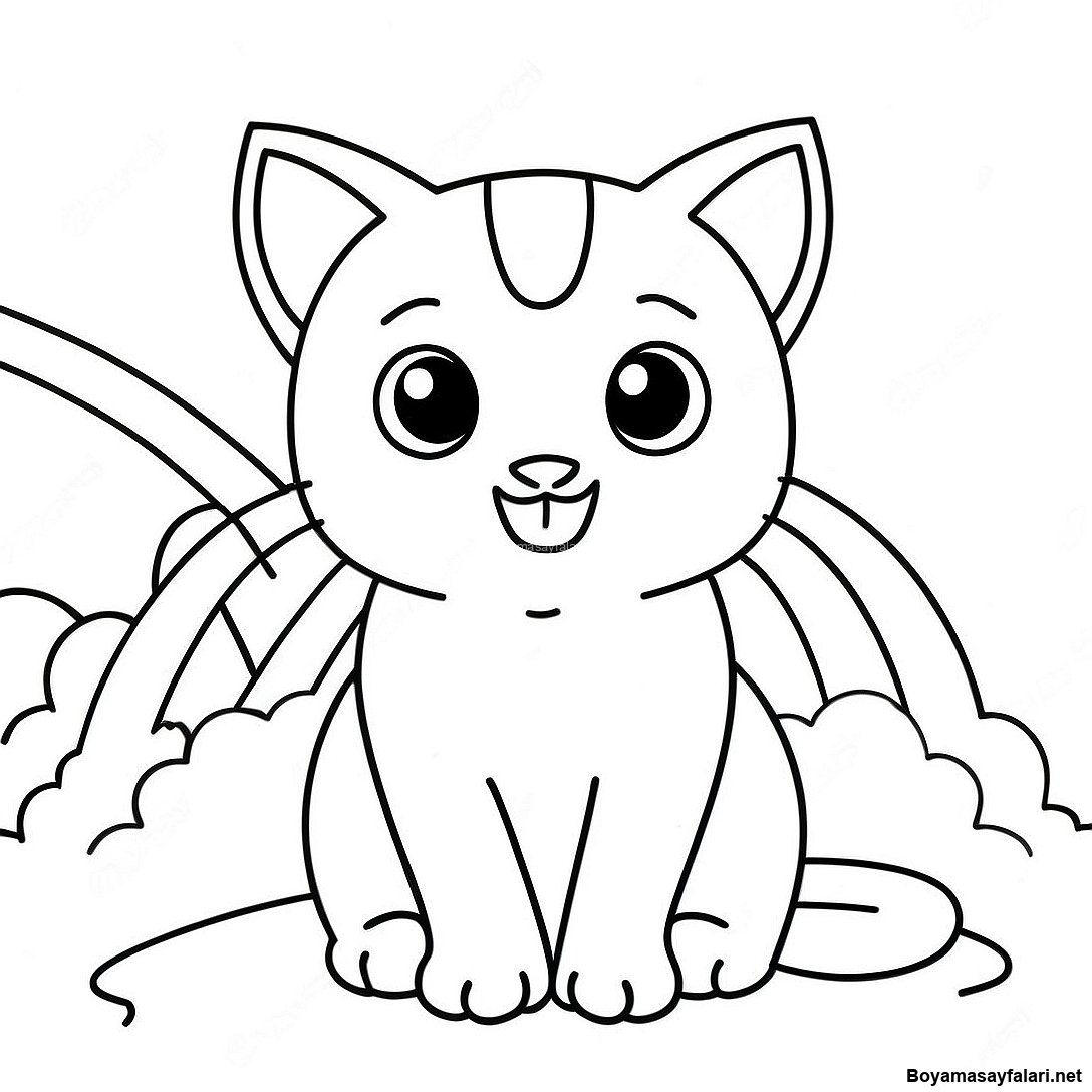 Gokkusagi Arka Planli Sevimli Mew Boyama Sayfasi