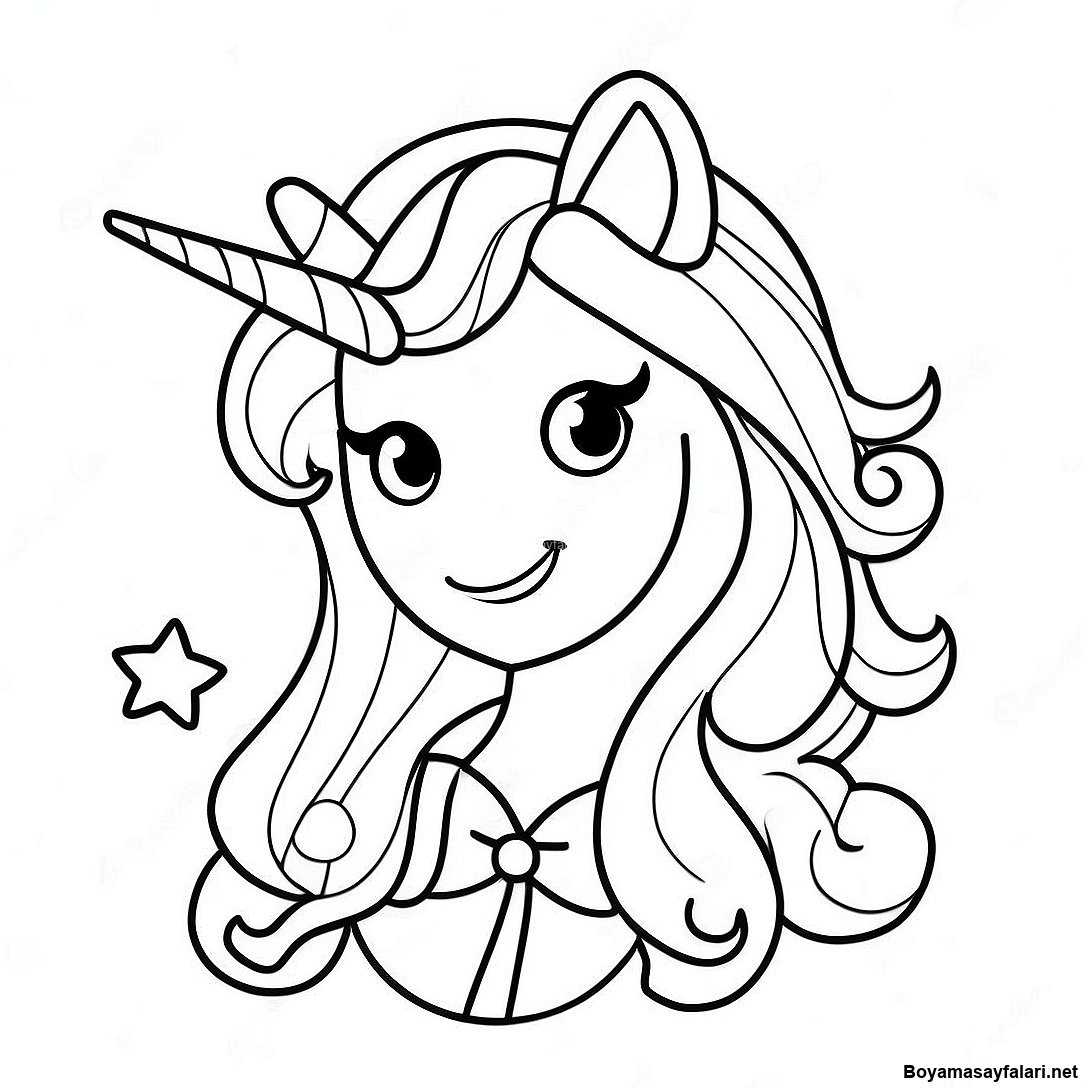Gokkusagi Sacli Buyulu Tekboynuz Kiz Boyama Sayfasi