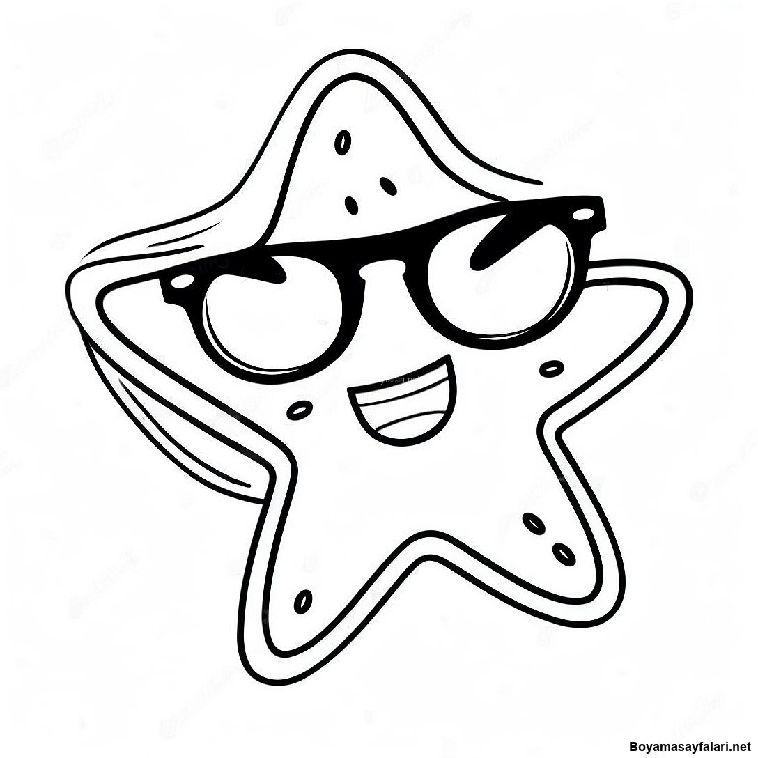 Gözlük Takmış Mutlu Yıldız Balığı Boyama Sayfası