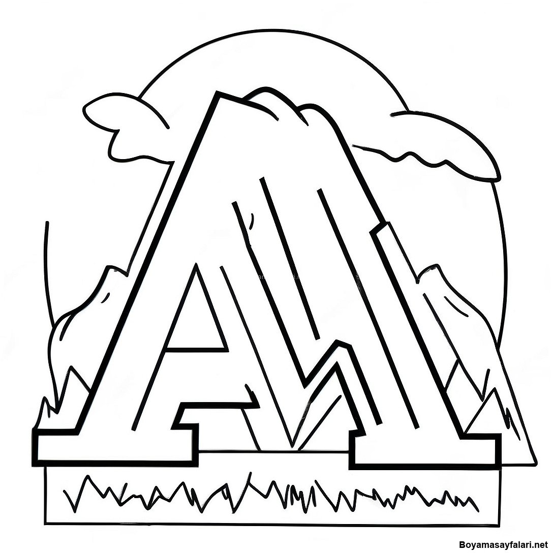 Güçlü Dağ M Harfi Boyama Sayfası'in Yazdırılabilir PDF'sini İndir