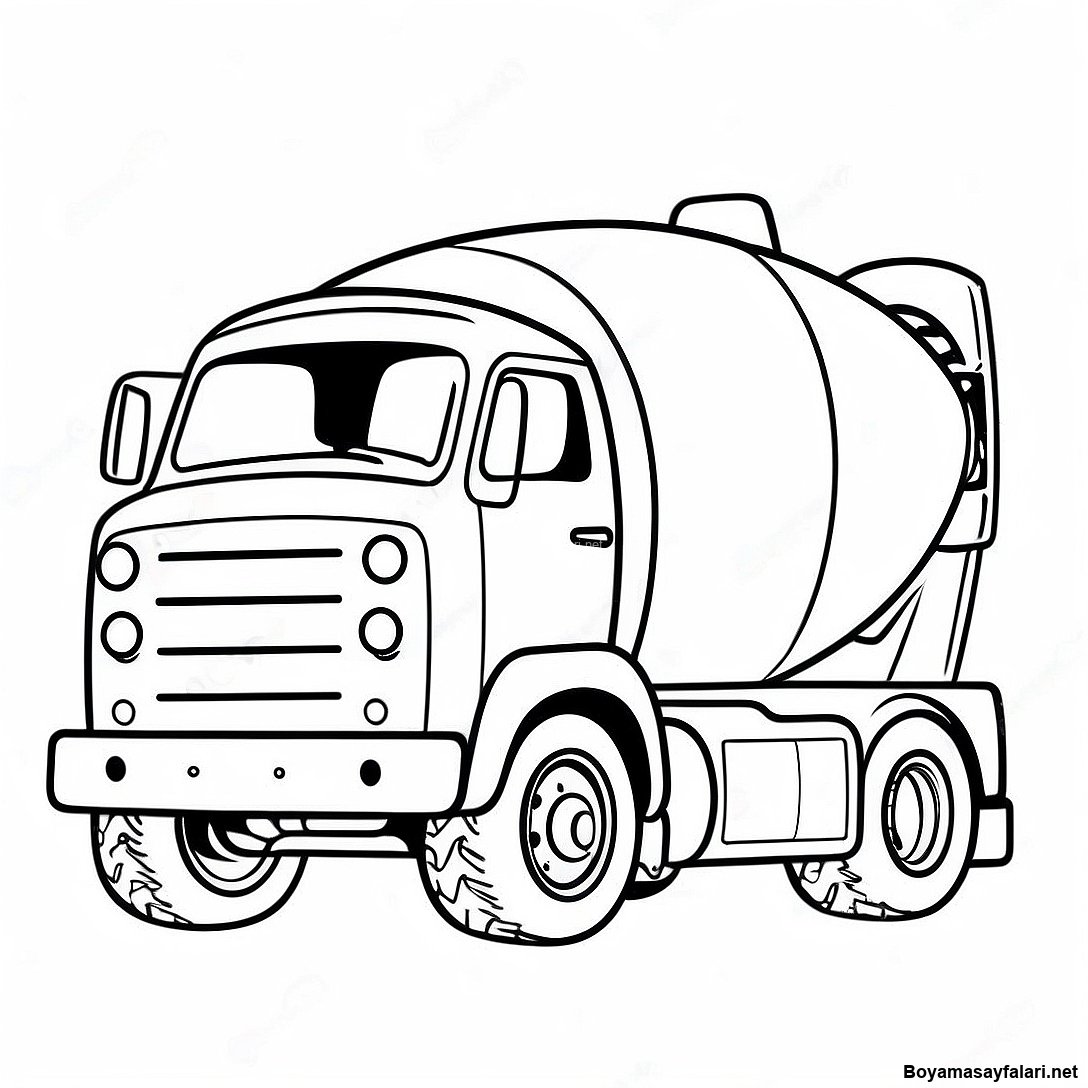 Gülen Yüzlü Sevimli Cimento Kamyonu Boyama Sayfası