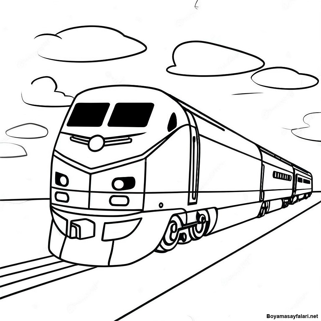 Kırsalda Hızla Giden Tren Boyama Sayfası