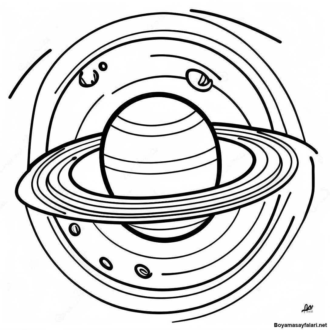 Halkali Renkli Saturn Boyama Sayfasi