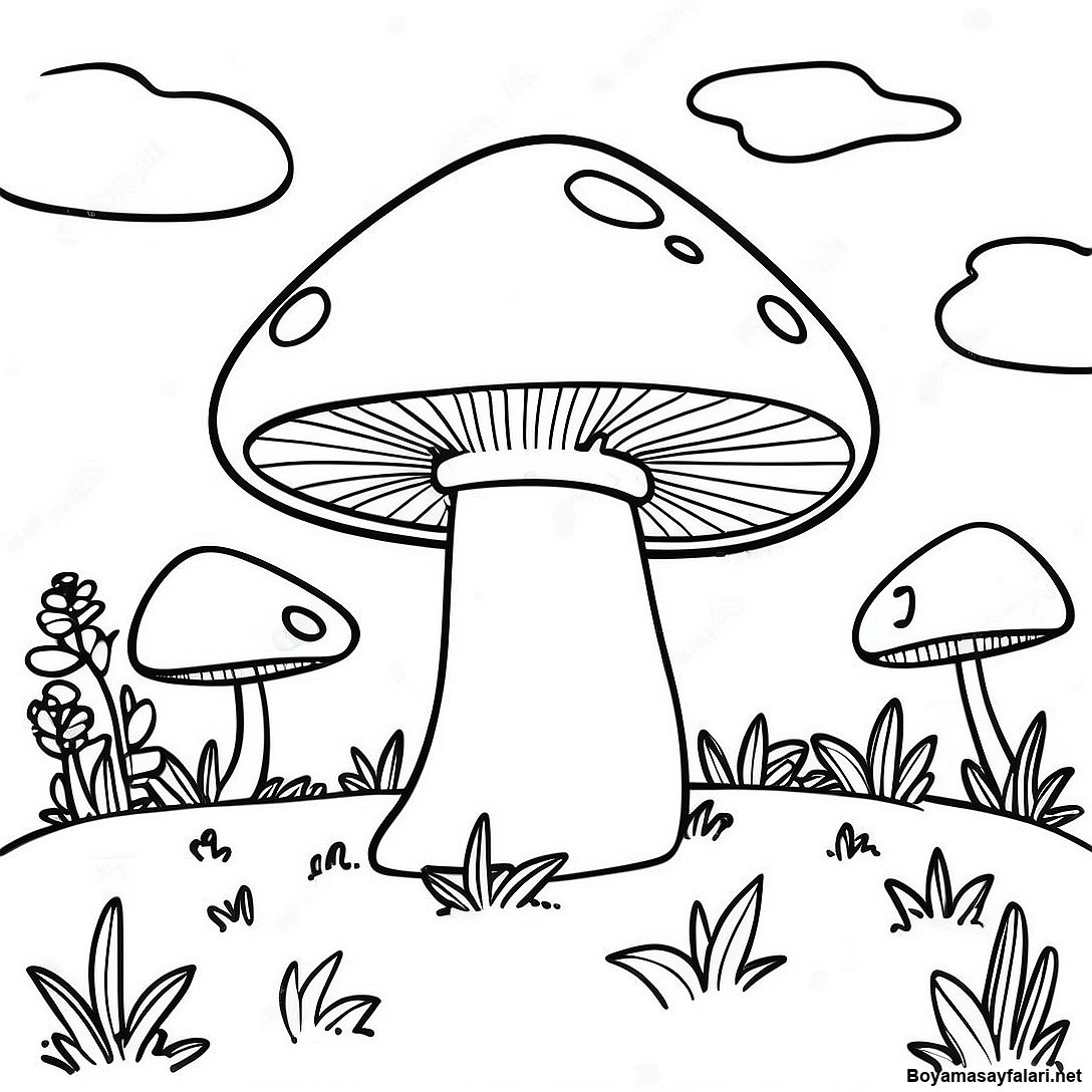 Hareketli Mantar Manzarasi Boyama Sayfasi