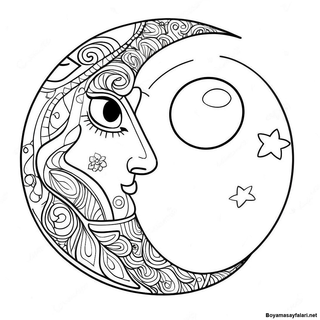 Işıldayan Ay Boyama Sayfası'in Yazdırılabilir PDF'sini İndir