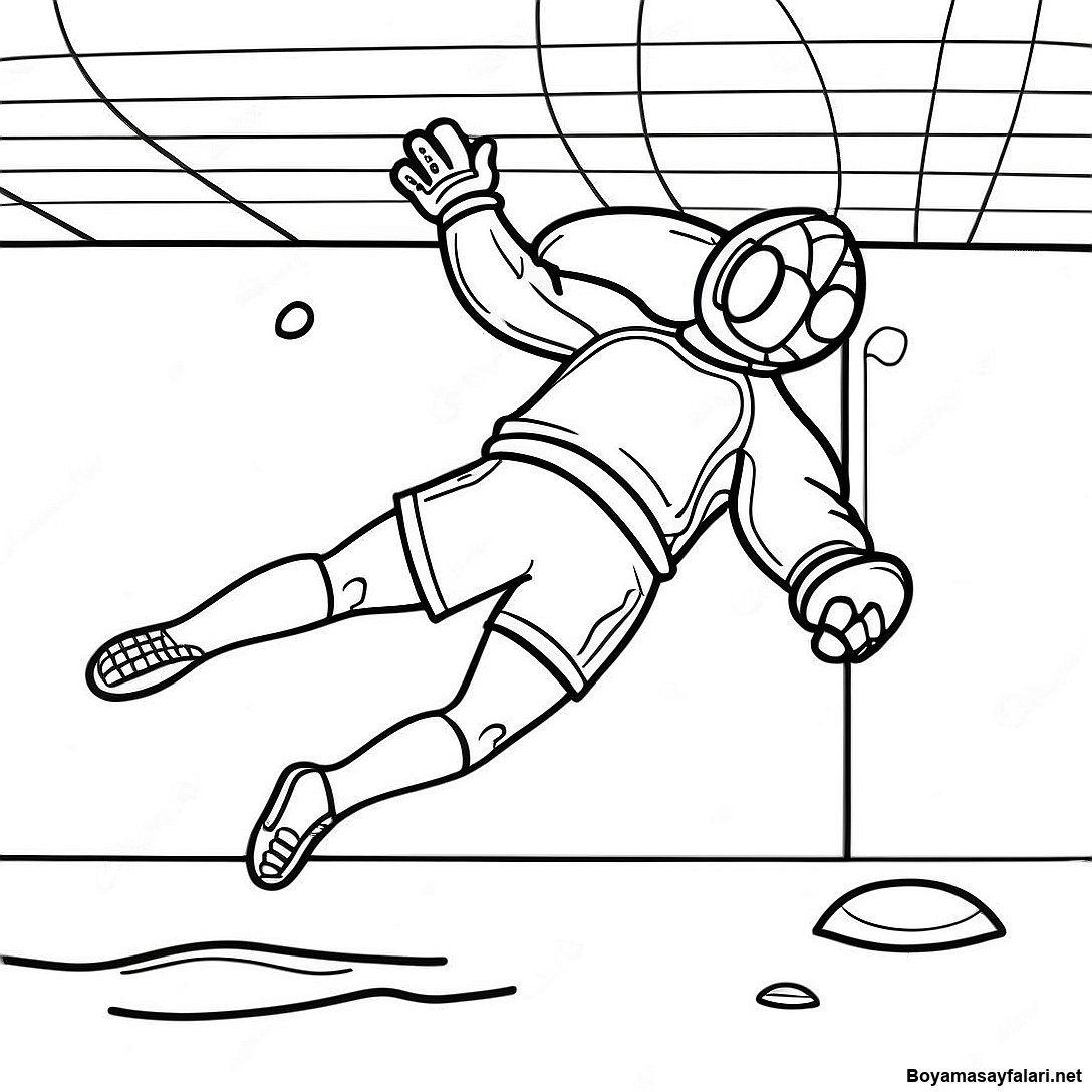 Kalecinin Kurtarış İçin Dalışı Boyama Sayfası'in Yazdırılabilir PDF'sini İndir