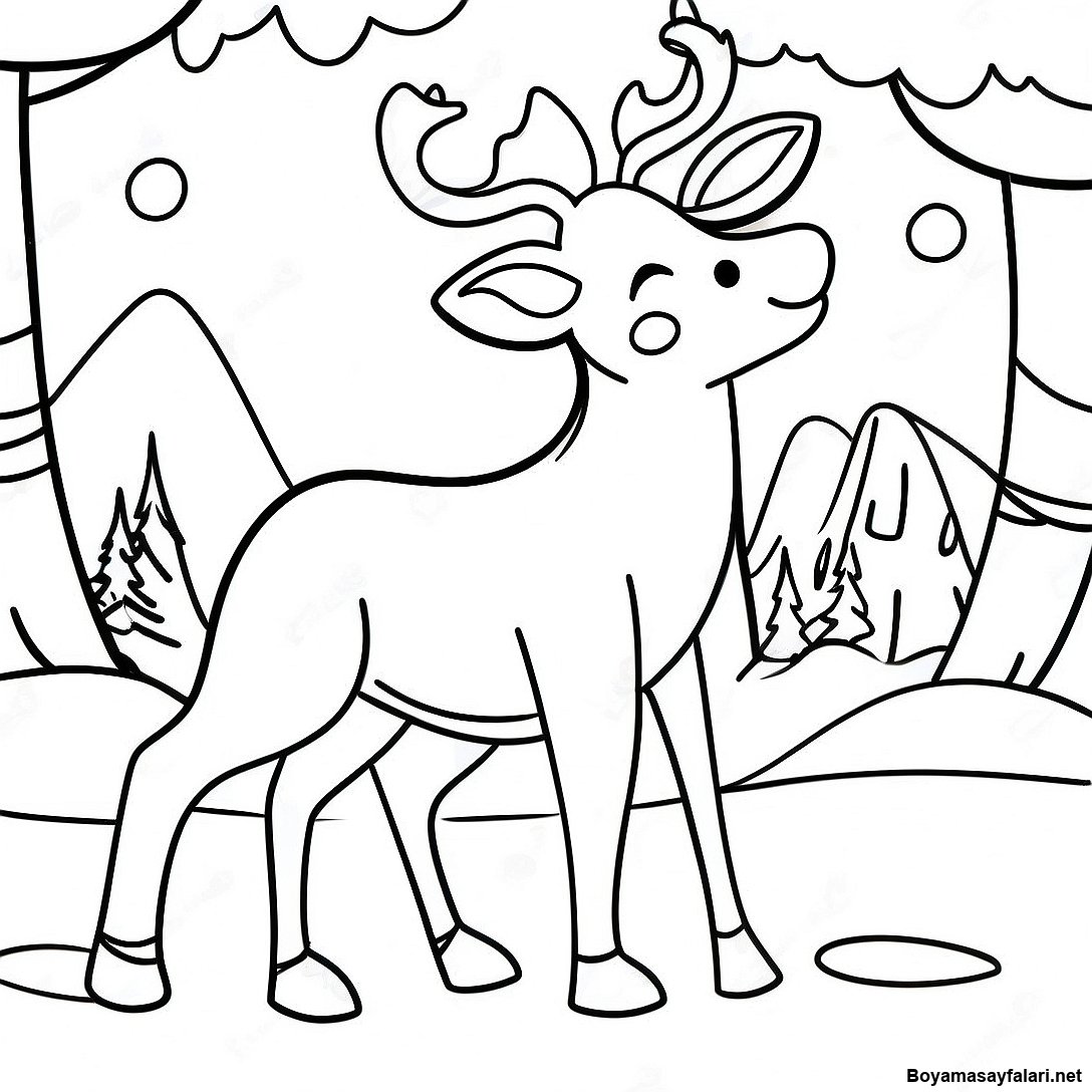 Kar Icinde Oynak Ren Geyigi Boyama Sayfasi