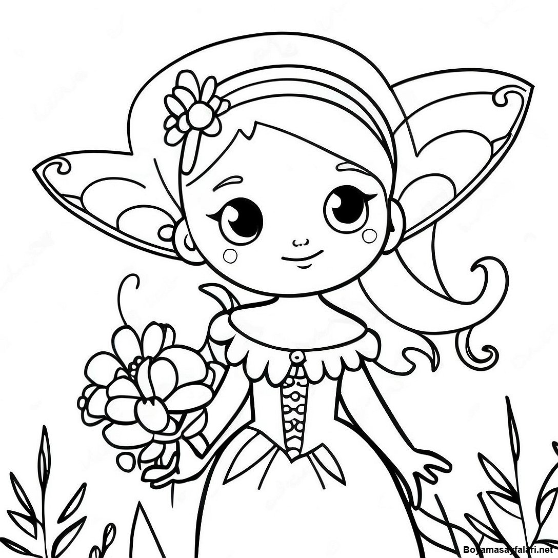 Karanlık Gotik Peri Çiçeklerle Boyama Sayfası