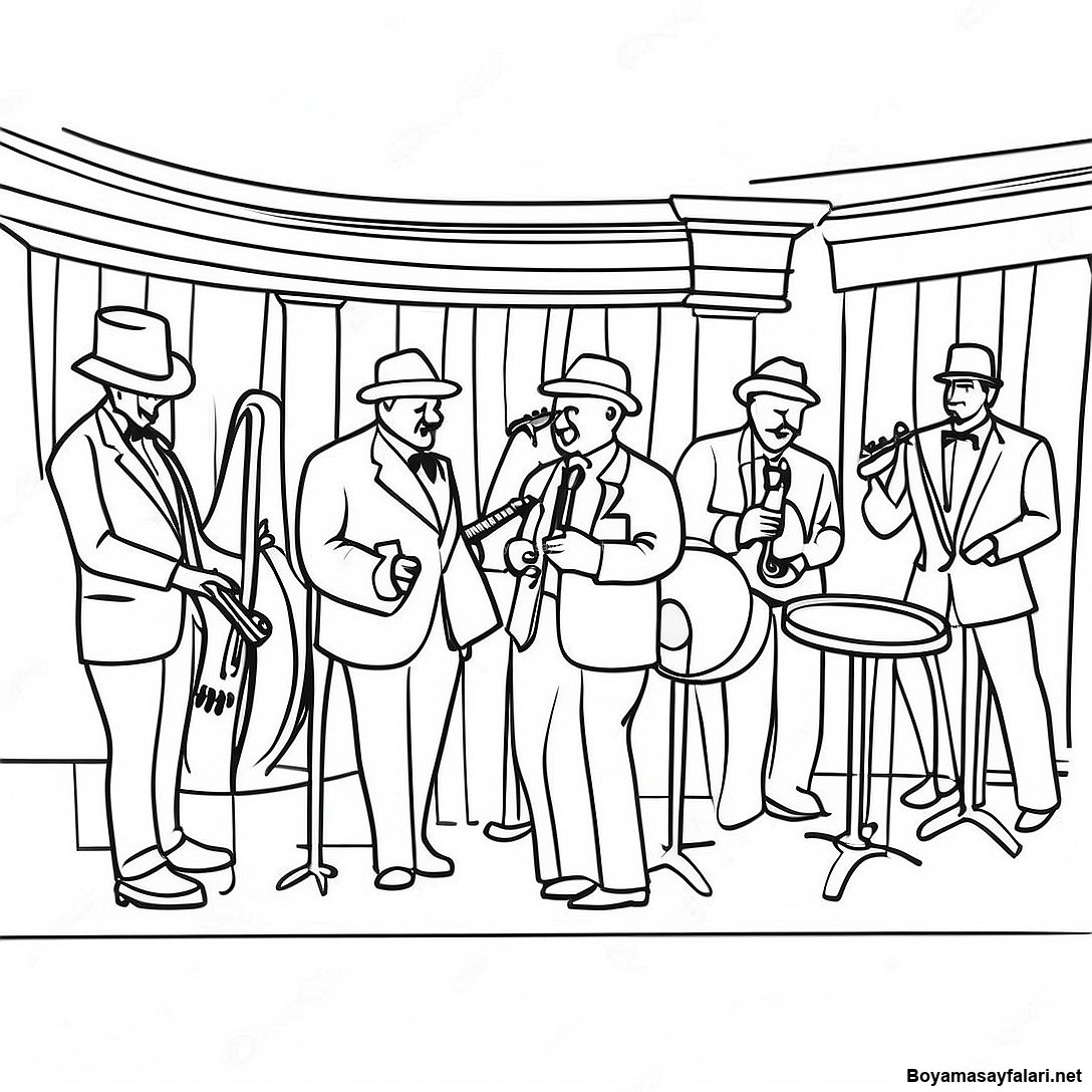 Klasik Caz Kulubu Sahnesi Boyama Sayfasi