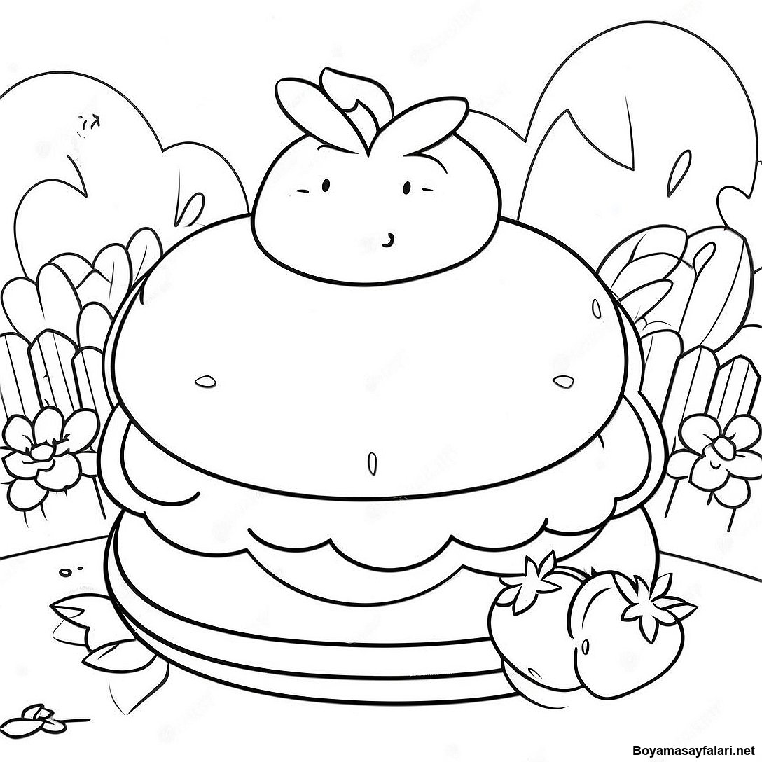 Klasik Çilek Kısa Kek Bahçede Boyama Sayfası'in Yazdırılabilir PDF'sini İndir