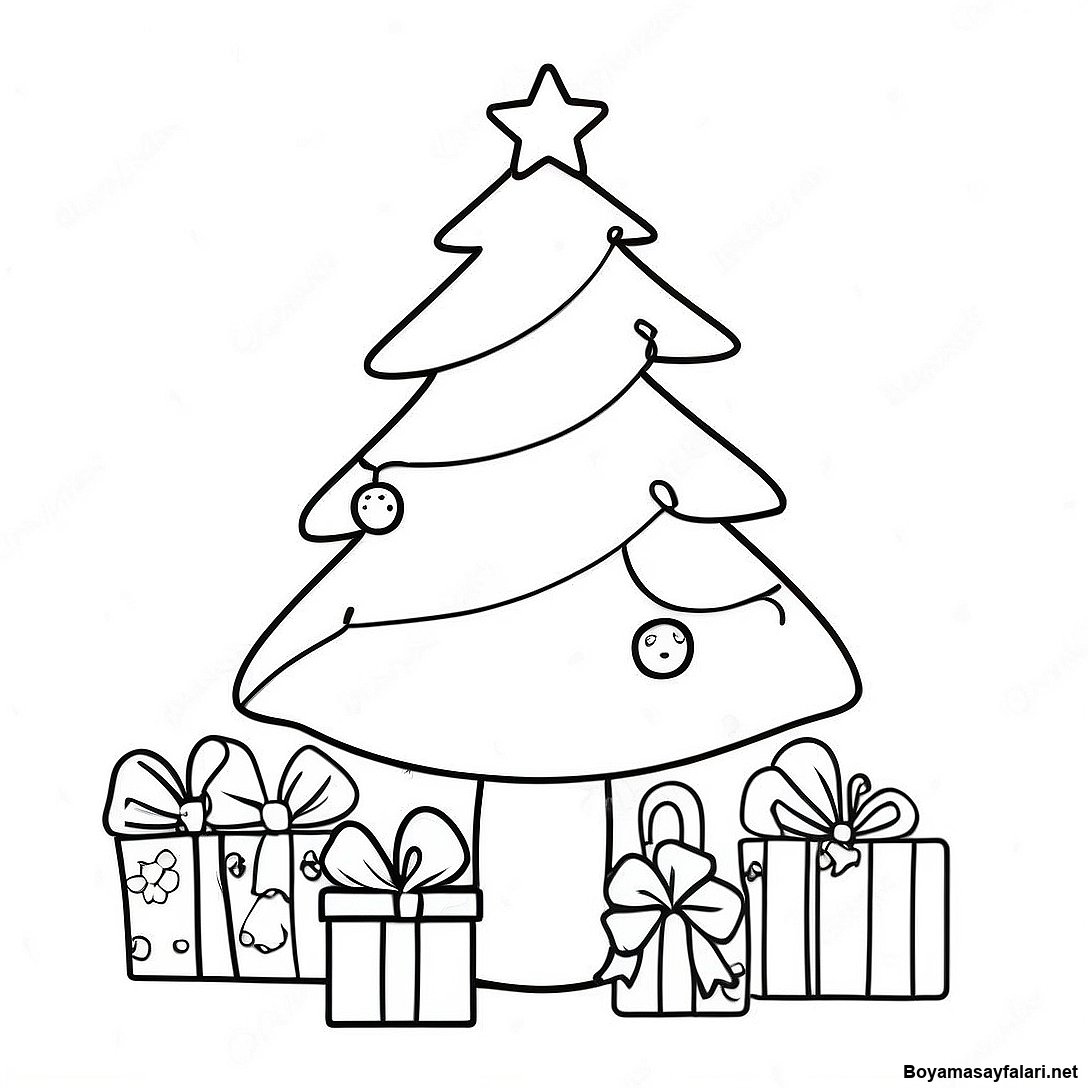 Kolay Sevimli Noel Agaci Boyama Sayfasi