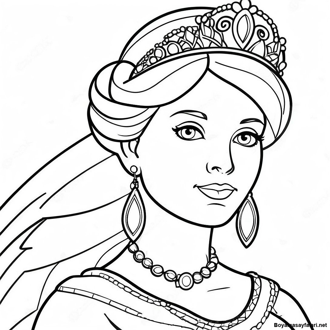 Parlak Tacı Olan Güzel Prenses Boyama Sayfası