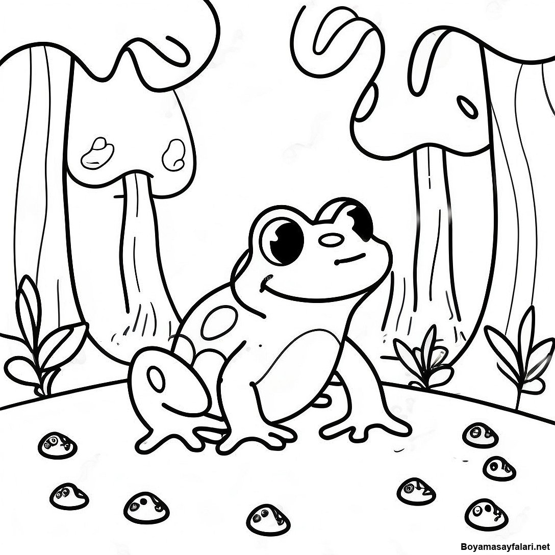 Kurbaga Ve Renkli Mantar Ormani Boyama Sayfasi