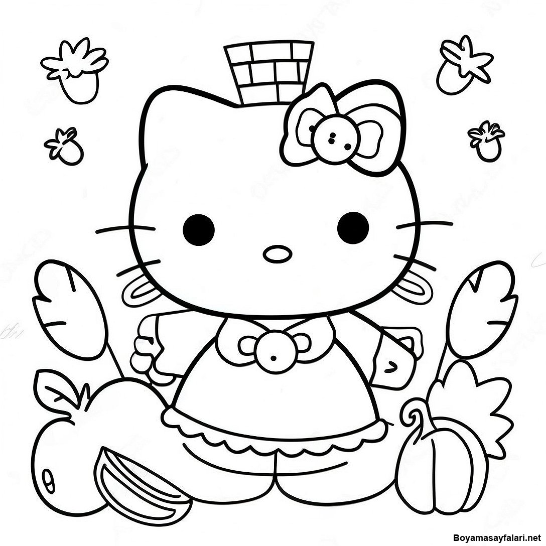 Merhaba Kedi Şükran Günü Boyama Sayfası