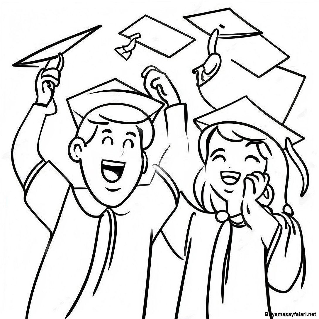 Mutlu Mezunlar Kutlama Boyama Sayfasi