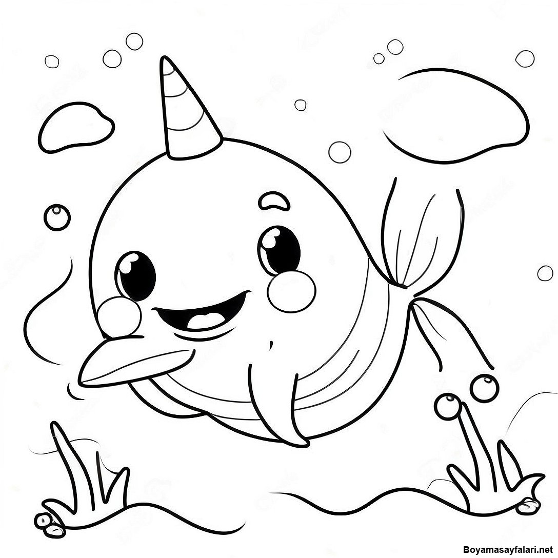 Mutlu Tam Olarak Narwhal Boyama Sayfası