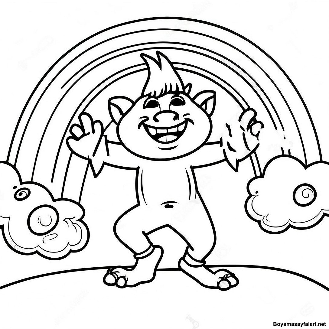 Mutlu Troll Gökkuşağının Altında Dans Ediyor Boyama Sayfası