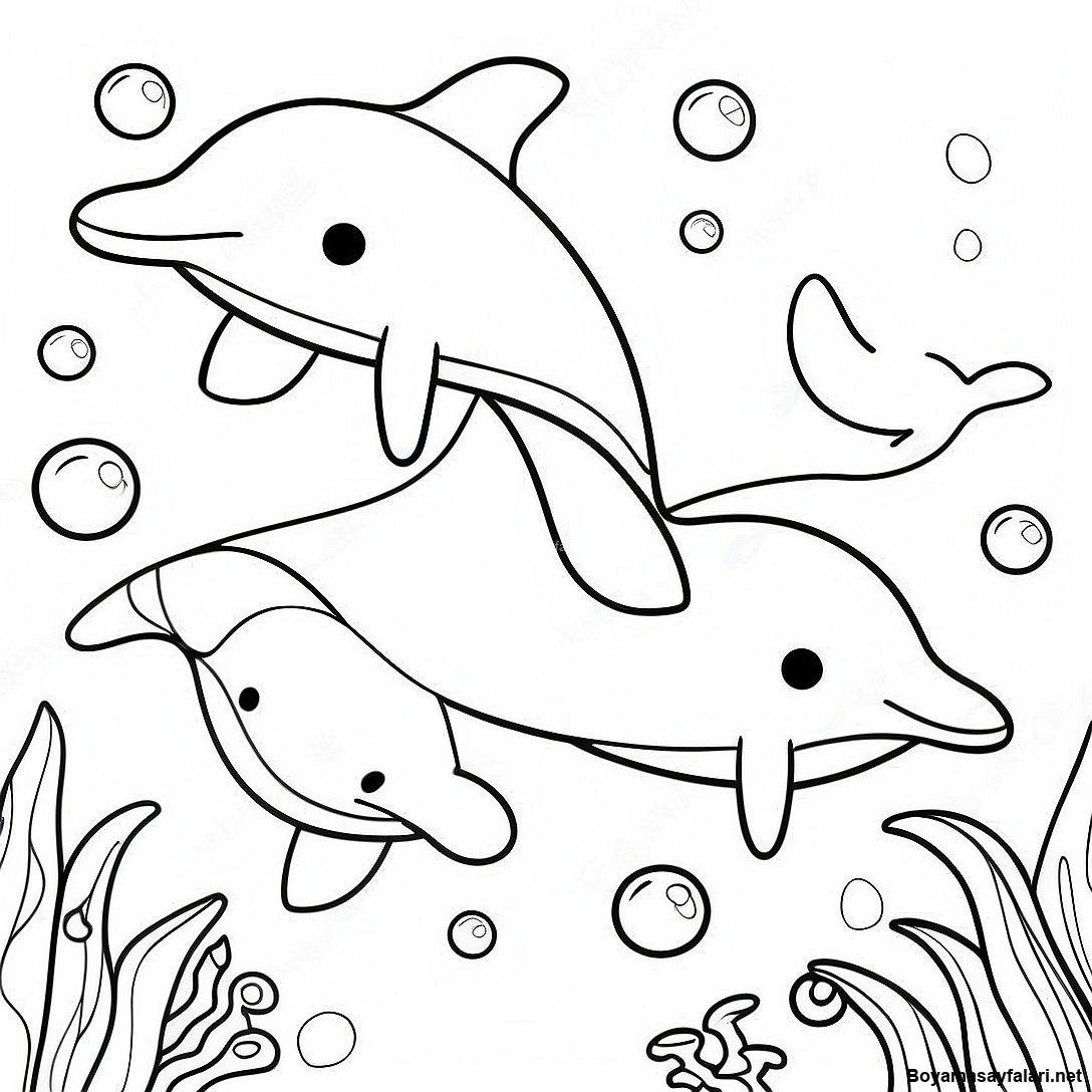 Mutlu Yunus Ailesi Birlikte Yuzuyor Boyama Sayfasi