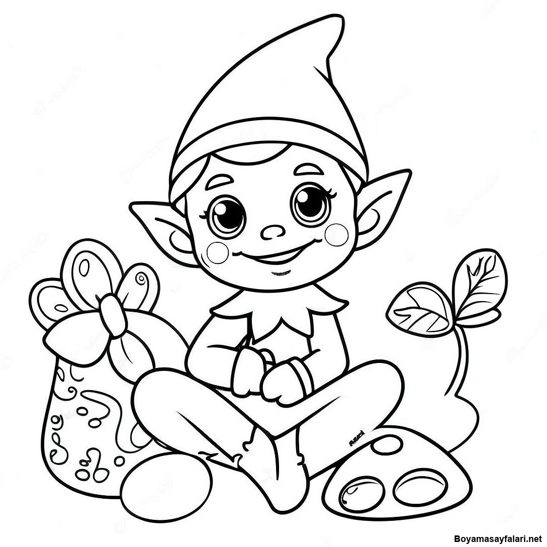 Neşeli Elf Rafın Üzerinde Boyama Sayfası
