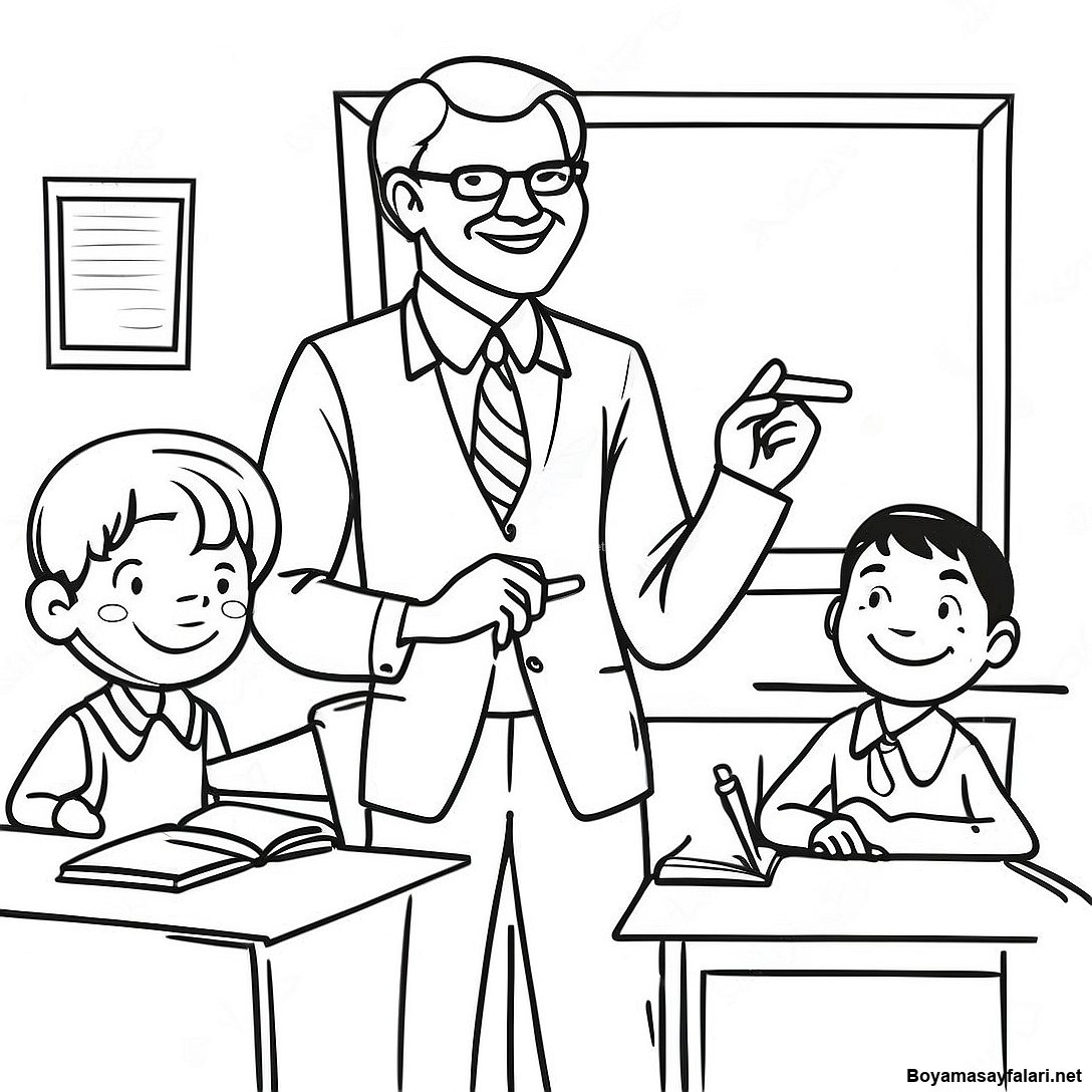 Ogrencileriyle Dostca Ogretmen Boyama Sayfasi