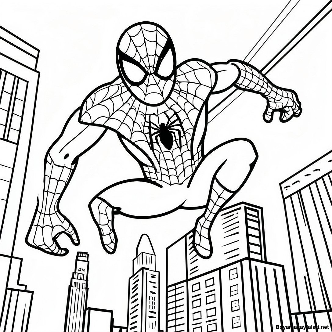 Şehirde Salınan Örümcek Adam Boyama Sayfası