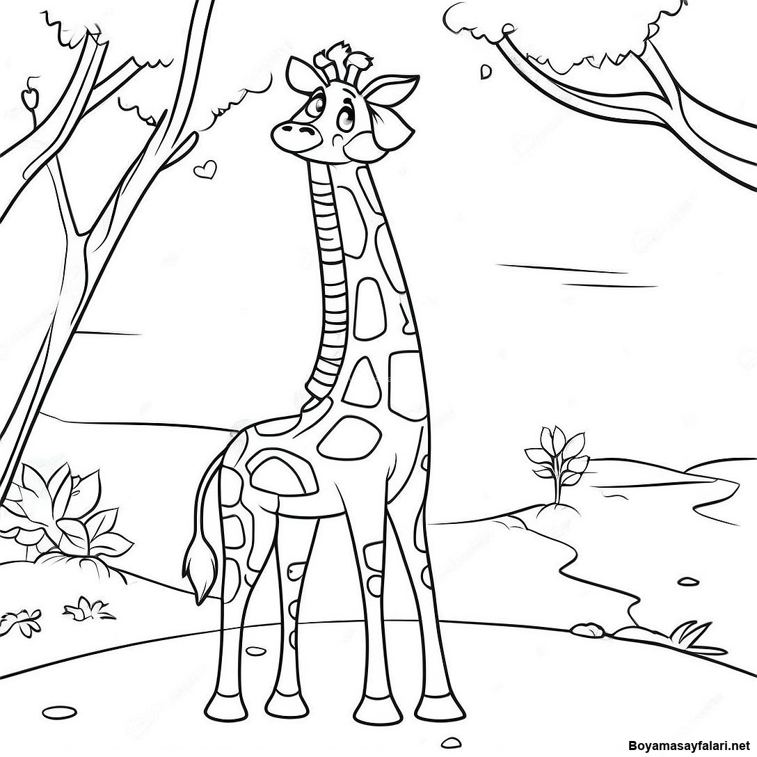 Oyunbaz Afrika Zurafasi Boyama Sayfasi