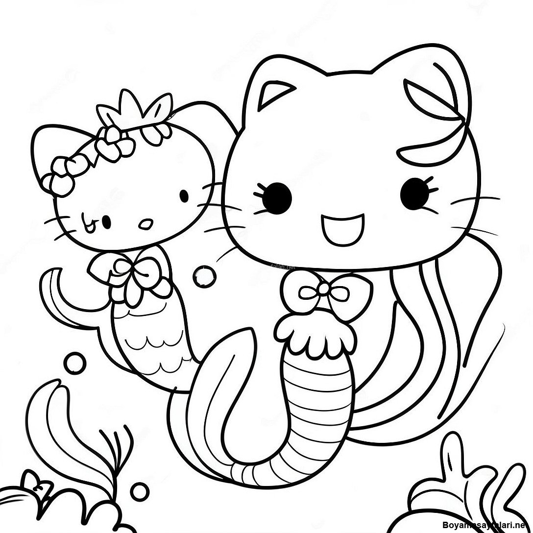 Oyunbaz Hello Kitty Deniz Kızı Arkadaşları Ile Boyama Sayfası