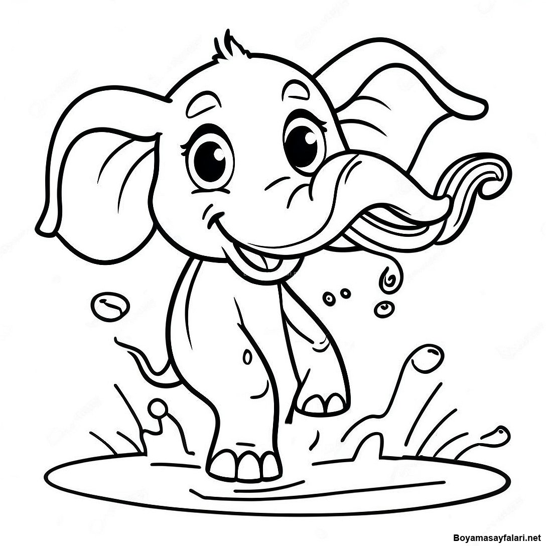 Oyunbaz Sarhoş Fil Su Sıçratma Boyama Sayfası