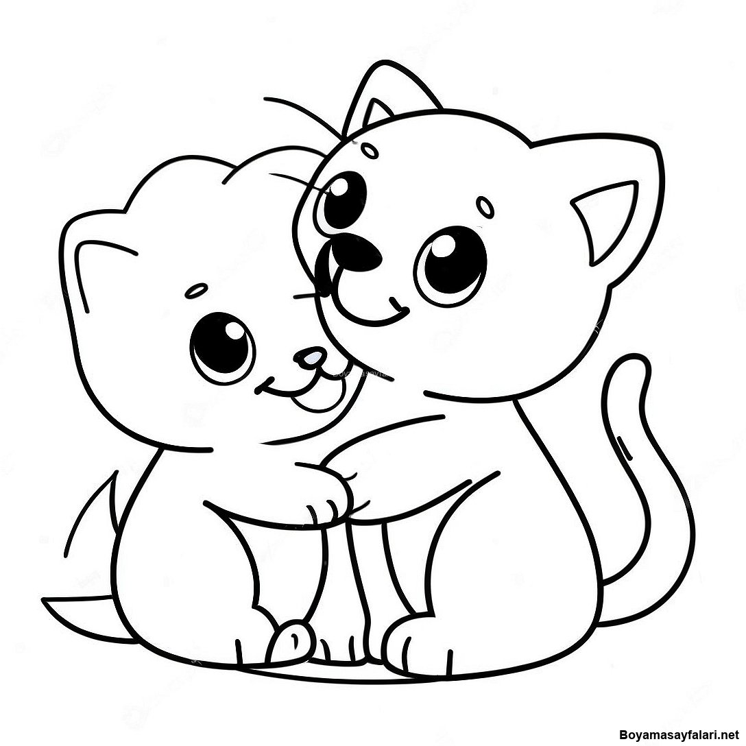 Oyunbaz Yavru Kopek Ve Kedi Boyama Sayfasi