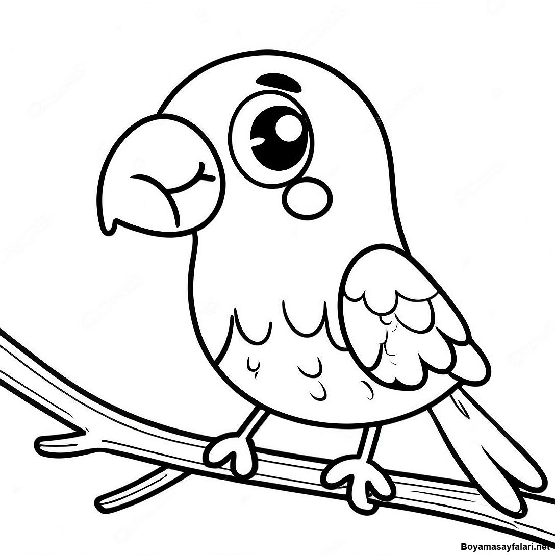 Parlak Gagalı Mutlu Papağan Boyama Sayfası
