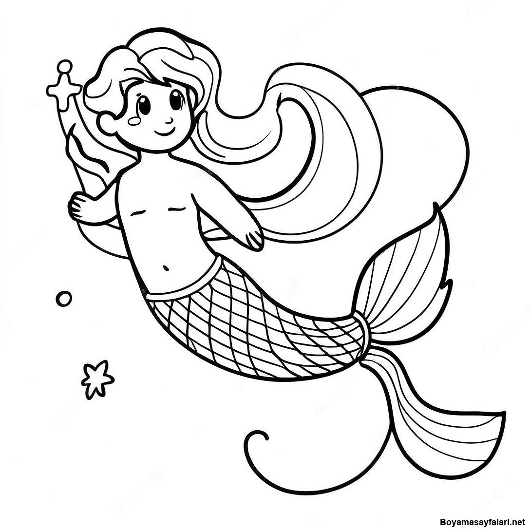 Parlak Kuyruklu Deniz Kızı Boyama Sayfası