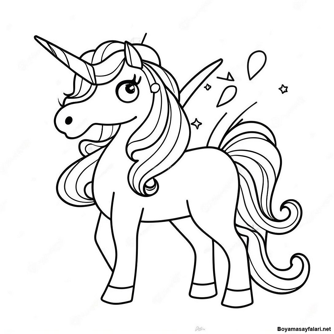 Parlayan Buyulu Tekboynuz Boyama Sayfasi