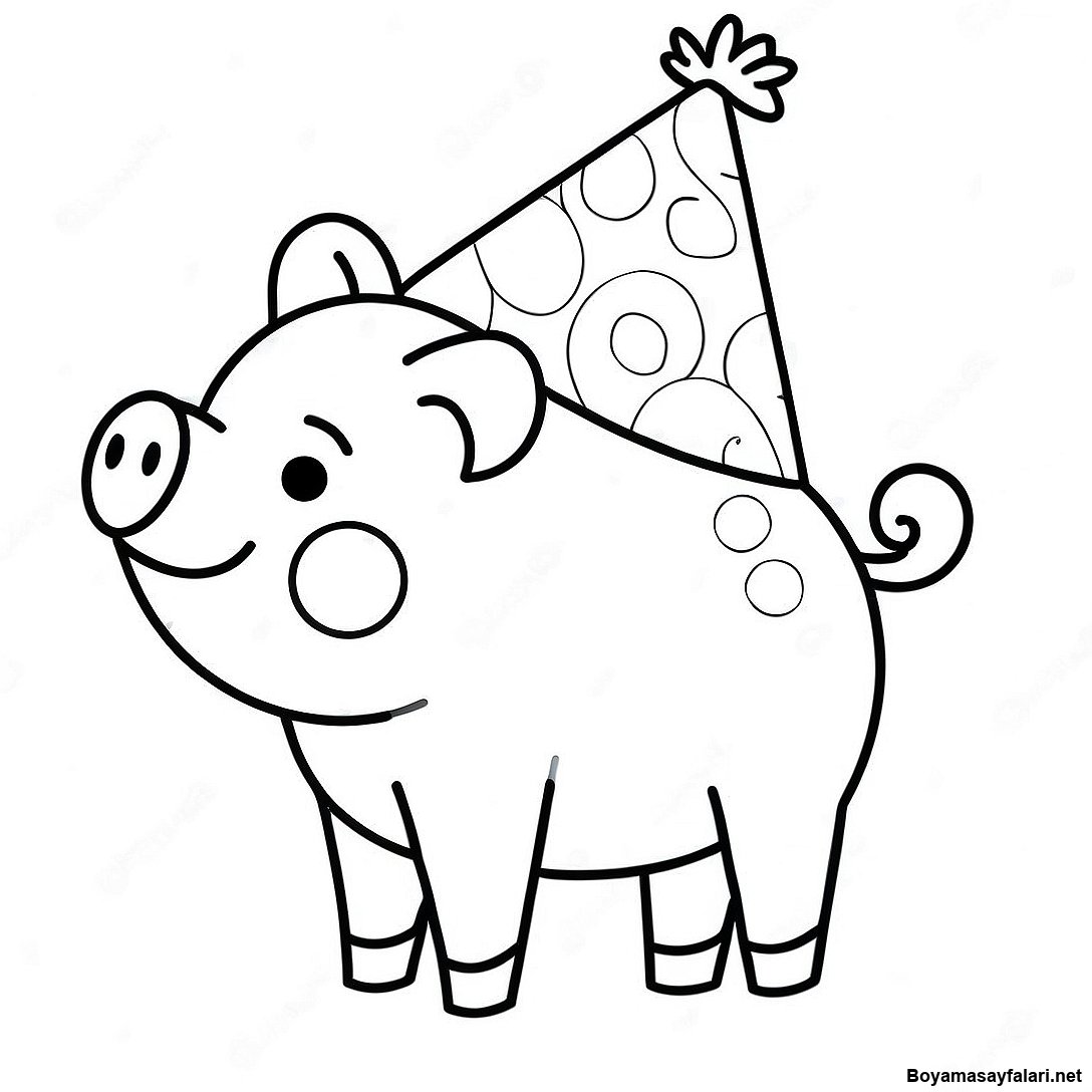 Parti Sapkasiyla Domuzcuk Boyama Sayfasi
